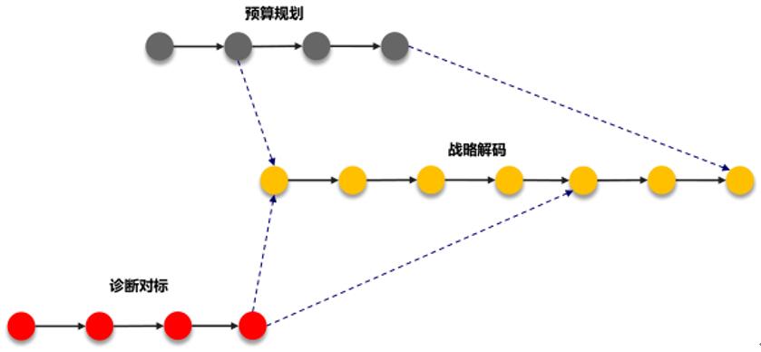 通過戰(zhàn)略性對標(biāo)(Benchmarking)明確組織差距;通過戰(zhàn)略解碼形成任務(wù)列表、繪制戰(zhàn)略地圖,編制BSC指標(biāo)體系;通過戰(zhàn)略性預(yù)算管理(Budget)對經(jīng)濟(jì)指標(biāo)進(jìn)行量化分析,通過戰(zhàn)略績效一體化管理,化戰(zhàn)略為執(zhí)行。