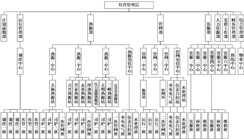 公司設(shè)有十一個(gè)處室、一個(gè)用戶服務(wù)中心、七個(gè)車間、六個(gè)運(yùn)營(yíng)所,員工420人。