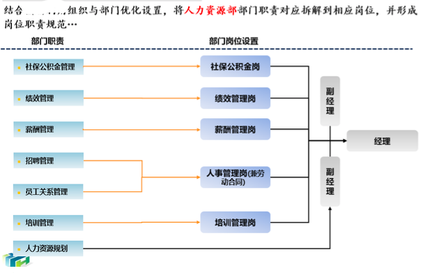 各部門職能劃分是明確部門間職責(zé)的基礎(chǔ),崗位設(shè)置是根據(jù)已梳理的組織架構(gòu)和關(guān)鍵職責(zé),將部門職責(zé)進(jìn)一步分解到崗位職責(zé),從而確定關(guān)鍵崗位。崗位設(shè)置遵循以下原則:崗位設(shè)置目標(biāo)與部門職能一致原則、整分合原則、最少崗位數(shù)原則及規(guī)范化原則。