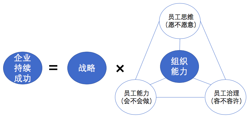 將組織能力的落腳點放在了員工(人才)層面的各種表現(xiàn),薪酬績效、股權激勵、組織架構、崗職體系等等管理工具、方法都比如能夠在員工思維、員工治理、員工能力三個層面有所體現(xiàn)。