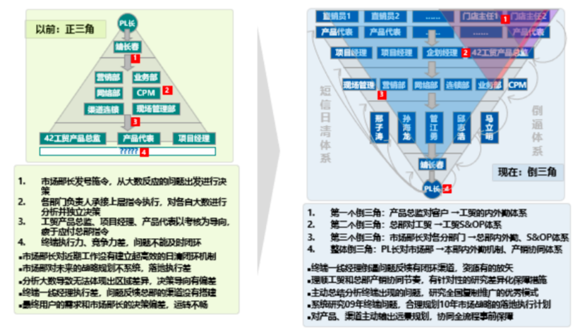 5、倒三角將扁平化作為變革的重要目標(biāo),大幅削減中間管理層級和領(lǐng)導(dǎo)職位,給內(nèi)部溝通、信息傳遞和決策模式帶來了新的挑戰(zhàn)。