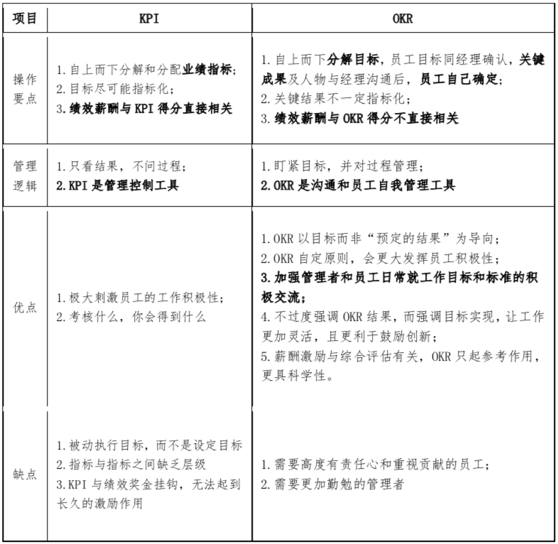 另外,OKR與KPI兩種考核方式的主要區(qū)別是: