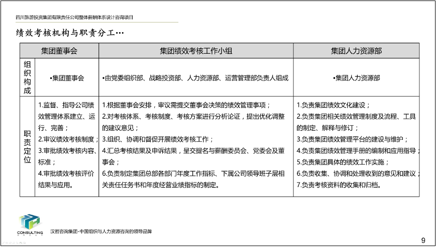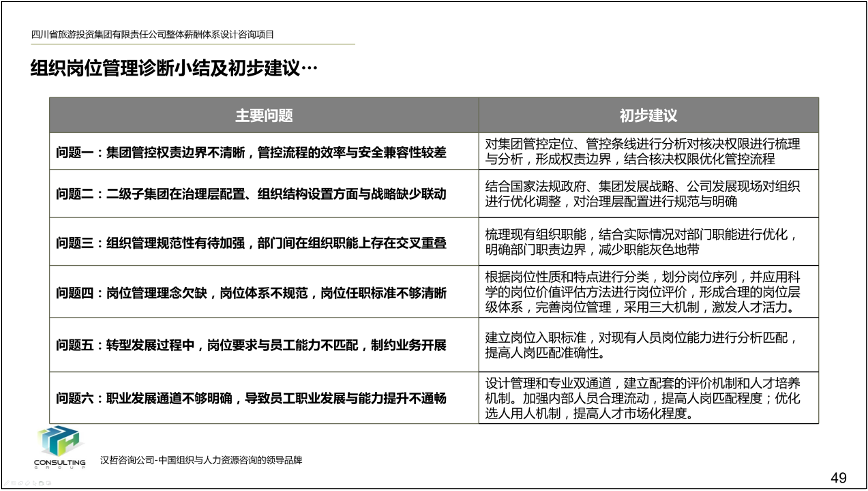 2、優(yōu)化集團(tuán)及子公司的組織崗位。根據(jù)集團(tuán)戰(zhàn)略發(fā)展方向和子公司業(yè)務(wù)側(cè)重、未來發(fā)展預(yù)期,對集團(tuán)及子公司部門設(shè)置、部門職能模塊選擇進(jìn)行了優(yōu)化和調(diào)整,并根據(jù)集團(tuán)及子公司組織架構(gòu)的調(diào)整對各部門崗位設(shè)置、職能、編制進(jìn)行了優(yōu)化,形成了較為合理、科學(xué)的組織崗位設(shè)置、部門職能匯編以及崗位說明書匯編。