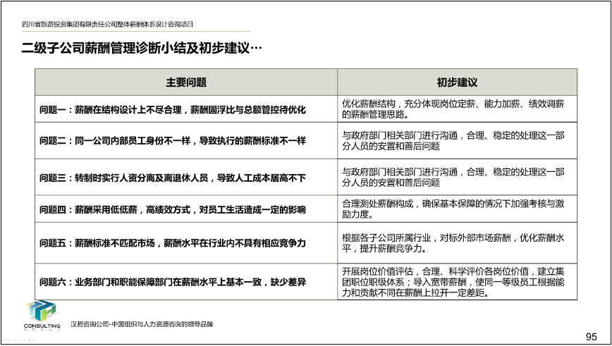 2、優(yōu)化集團(tuán)薪酬管理辦法。根據(jù)集團(tuán)的內(nèi)部情況、外部環(huán)境、企業(yè)發(fā)展階段以及市場化需要,確定集團(tuán)薪酬策略,進(jìn)而從薪酬模式、薪酬結(jié)構(gòu)和薪酬水平三個方面對集團(tuán)薪酬進(jìn)行優(yōu)化調(diào)整,提高薪酬的激勵作用。