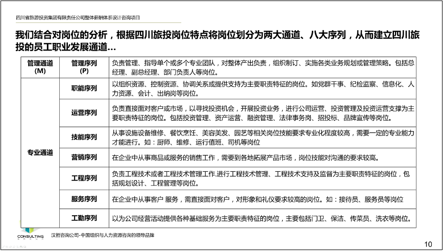 3、優(yōu)化職業(yè)發(fā)展通道。根據(jù)集團(tuán)人才發(fā)展現(xiàn)狀、現(xiàn)有職業(yè)發(fā)展通道情況以及人崗匹配程度,建立崗位入職標(biāo)準(zhǔn),對現(xiàn)有人員崗位能力進(jìn)行分析匹配,并設(shè)計(jì)管理和專業(yè)雙通道,建立配套的評價機(jī)制和人才培養(yǎng)機(jī)制,提高人崗匹配程度以及人才市場化程度,進(jìn)而加強(qiáng)集團(tuán)的市場化競爭水平。