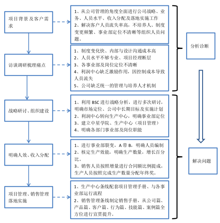 項目按照戰(zhàn)略及組織調(diào)整已經(jīng)完成落地,戰(zhàn)略中知識管理、培訓(xùn)工作、股權(quán)激勵也已經(jīng)成功續(xù)單。
