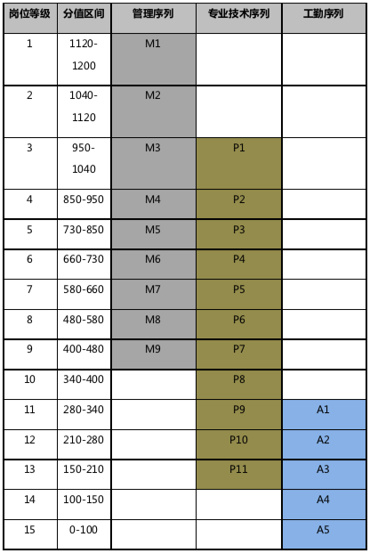 表:管理序列崗位等級(jí)劃分