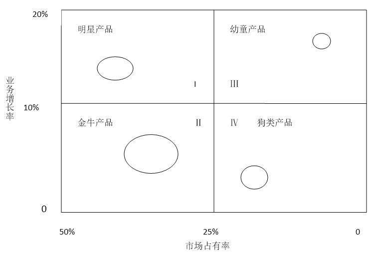 將以上業(yè)務劃入BCG矩陣,則如下圖所示:
